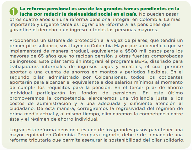 En el terreno de las pensiones también se presentan elevadas diferencias regionales: Manizales presenta la mayor cobertura de pensiones con un 39,5%, seguida de Medellín con 39,3%. En cambio, ciudades de la Región Caribe como Riohacha y Sincelejo alcanzan coberturas tan solo del 15% y 16%, respectivamente. Otro 25% de las personas mayores es beneficiaria del programa Colombia Mayor, que otorga una protección básica de 80.000 pesos mensuales, a toda luz insuficiente para tener condiciones de vida digna. Es decir que la mitad de la población de adultos mayor no cuenta con un ingreso garantizado.
