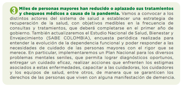 La situación antes descrita llama a una movilización en defensa de uno de los grupos más vulnerables de la sociedad colombiana. Sin embargo, las políticas de protección y cuidado de las personas mayores suelen pasar desapercibidas en la agenda política, más allá del debate pensional.